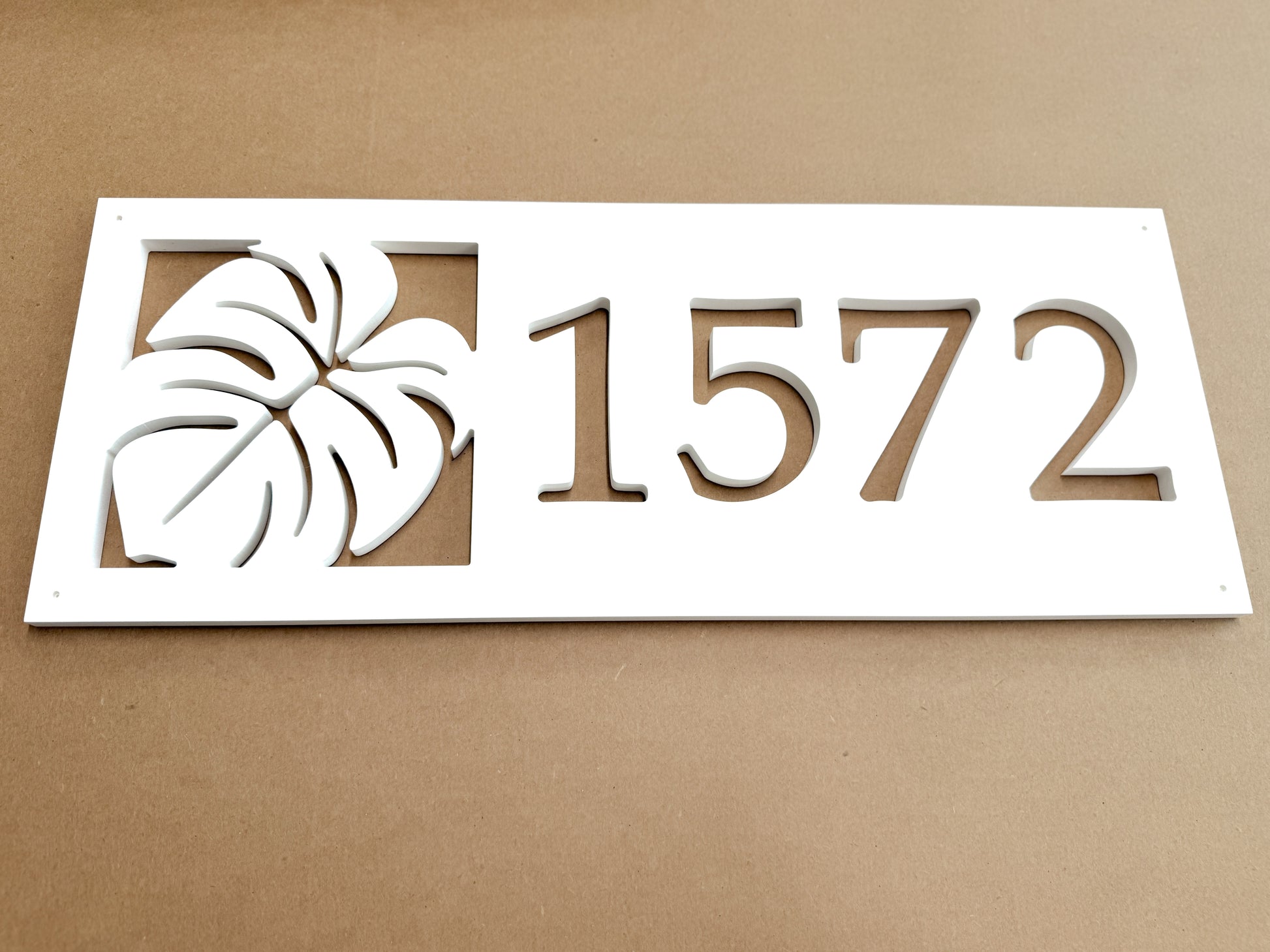 Crafted from premium 1/2" PVC board, this outdoor Monstera Leaf address sign is fully weatherproof and built to withstand sun, rain, humidity, and changing seasons—ensuring long-lasting durability and a crisp, beautiful finish year-round. Whether mounted on your home’s exterior wall, porch, or entryway, this tropical house number sign is both stylish and practical, making it the perfect finishing touch for your outdoor space or a thoughtful housewarming gift.