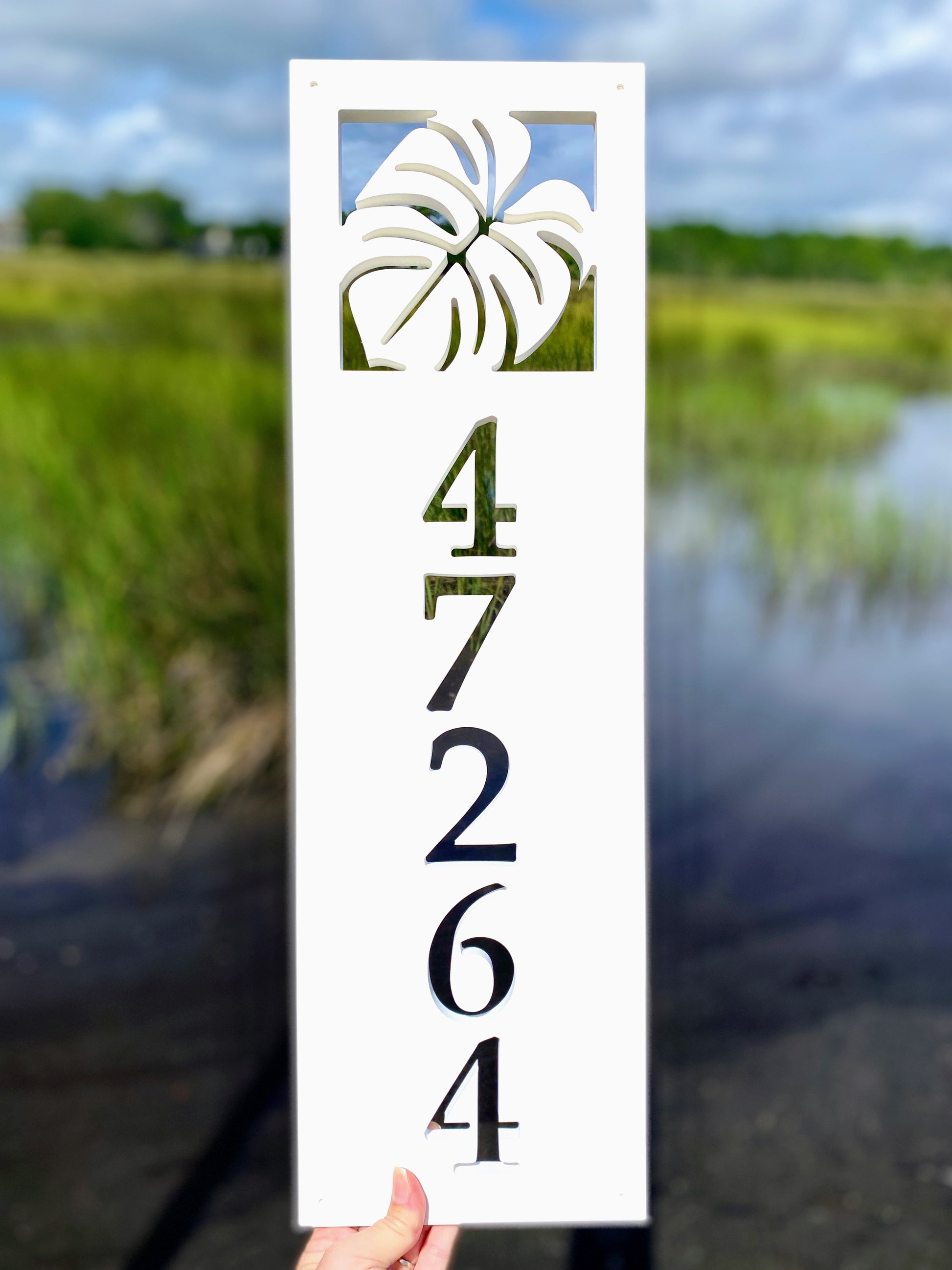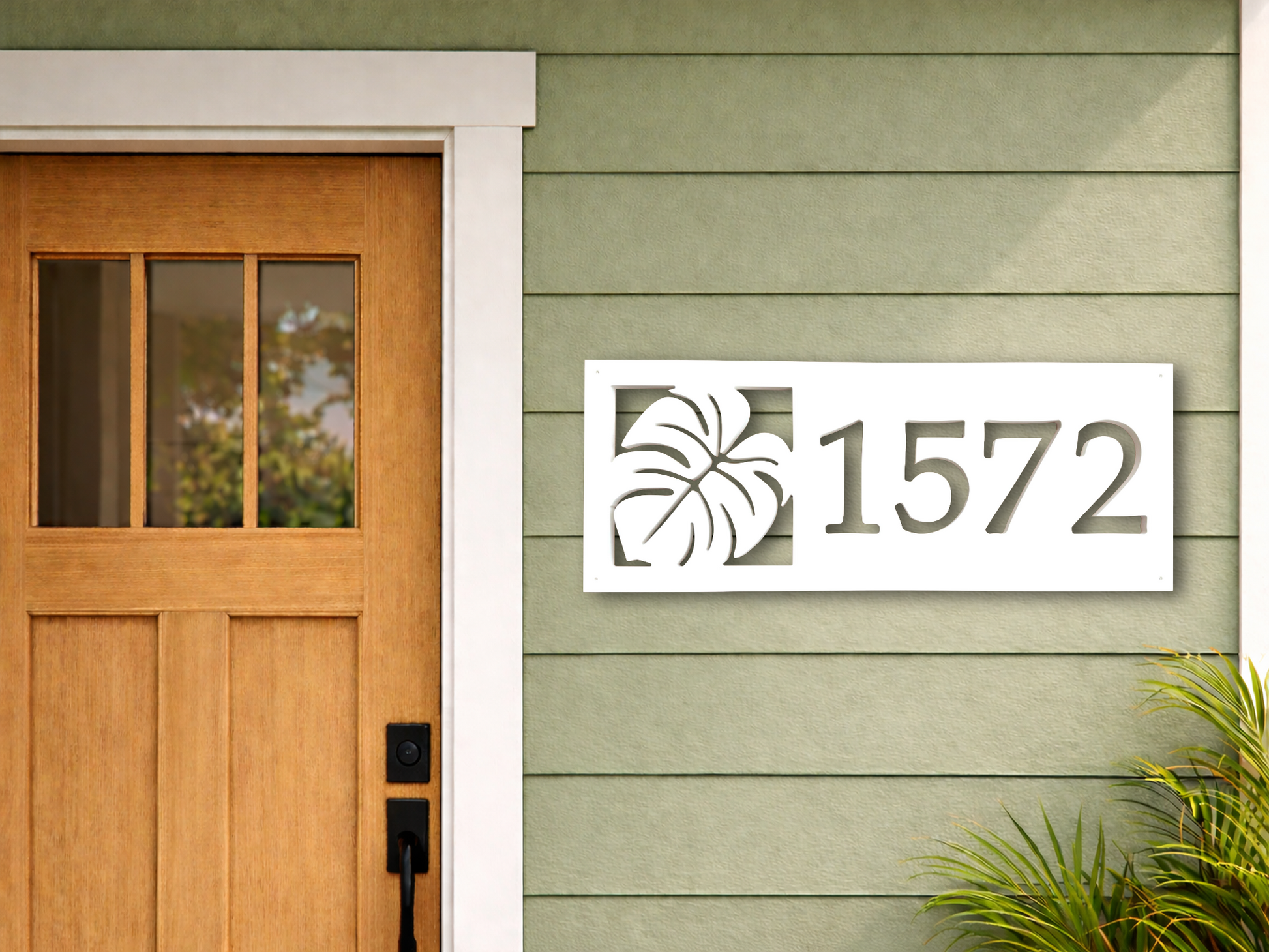 Bring lush, tropical style to your home’s exterior decor with this custom Monstera Leaf address sign. Designed to add a fresh, botanical vibe, this personalized house number plaque is customized with up to 5 characters and creates a bold, nature-inspired style to your curb appeal. Perfect for plant lovers, garden-inspired homes, or anyone who loves a vibrant tropical aesthetic, this sign blends natural beauty with clean, functional design.