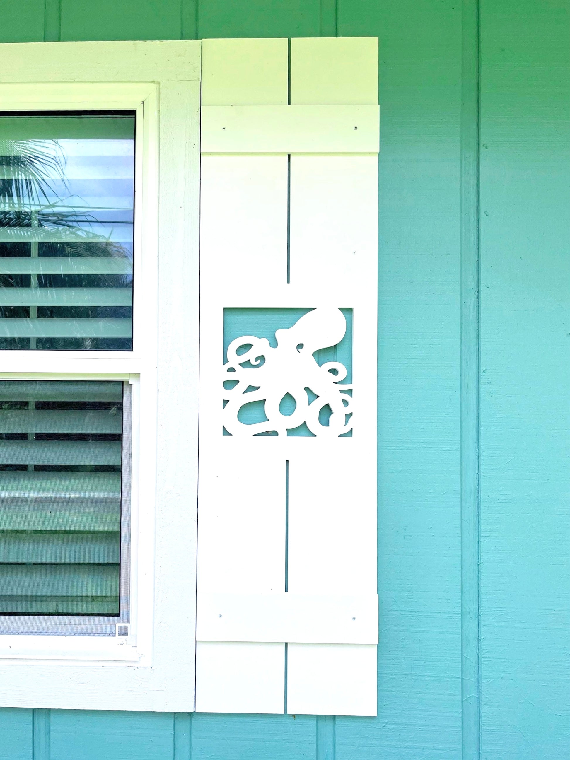 Nautical Octopus Exterior Window Shutters – Custom Weatherproof PVC Shutters for Beach Houses & Coastal Homes (Sold Individually)