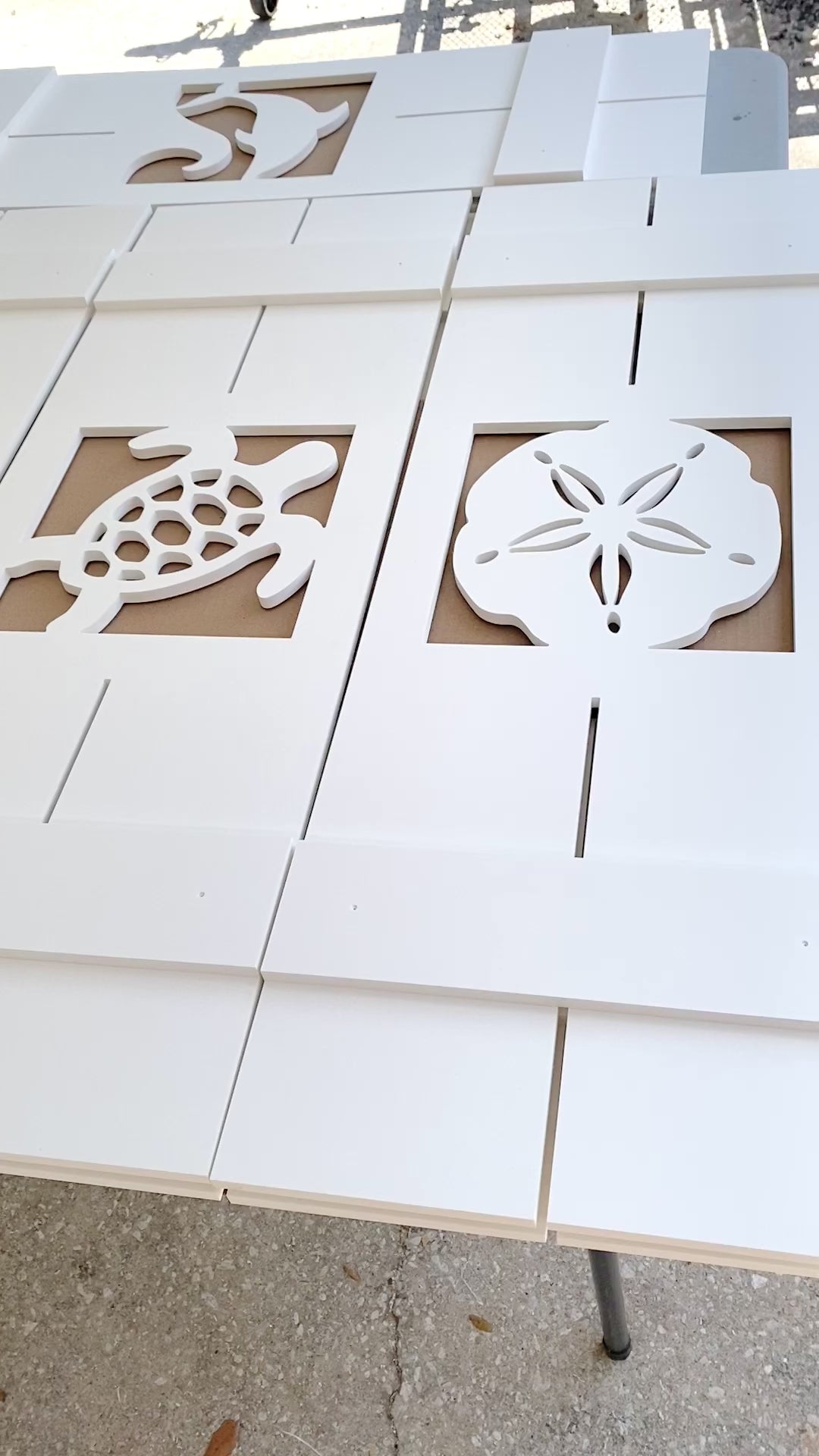 MATERIAL: Our products are made using premium grade all-weather PVC board. The PVC board we source for our products is unique in that it is not foam-filled (like most others use), but is a solid compressed PVC board, resulting in a sturdier, more resilient finished product. PVC is 100% weatherproof and intended for outdoor use, in both tropical and cold climates (even in the harshest conditions, like Florida sunshine, rain showers & salt air!). Our products can be hung in direct sun & weather exposure, and will not yellow, mildew, crack or rust, and is impenetrable to moisture and insects.