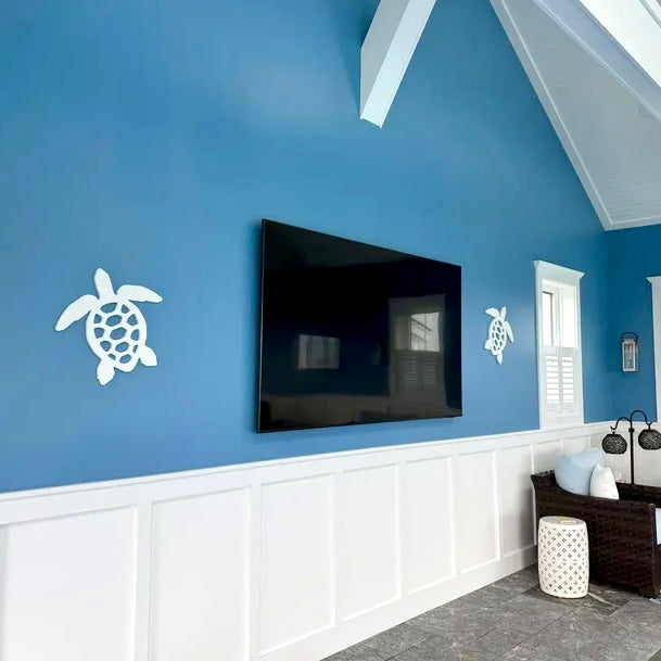 Add coastal elegance to your home’s exterior décor with this Large Sea Turtle Beach House Wall Art Sign. Perfect for beach houses, coastal homes, and waterfront retreats, this timeless nautical sea turtle accent instantly enhances curb appeal and brings serene seaside charm to any outdoor space. Expertly crafted from premium ½” all-weather PVC, this decorative wall sign is fully weatherproof and durable, built to withstand sun, salt air, rain, and snow without rusting, rotting, or cracking. Mount it easily on an exterior wall, fence, or gable to create a beautiful, long-lasting tropical focal point for your home’s outdoor décor.