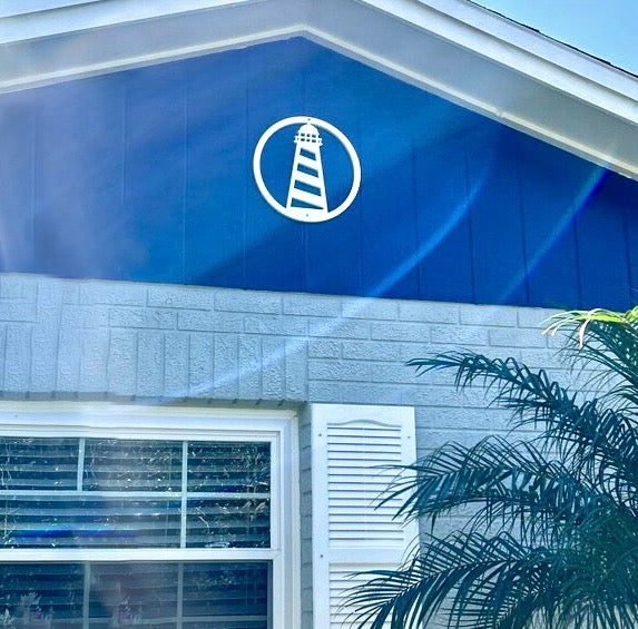 This large outdoor round nautical lighthouse beach house wall art sign will add gorgeous coastal charm to your home's exterior decor. Whether for your own personal home, beach house, or for a vacation rental property, our outdoor wall art signs will help your property to stand out with tropical curb appeal. All of our products are made from premium grade all-weather PVC Board, and will last for many years to come, even on direct oceanfront homes. We make all of our products in the USA, in Jacksonville, FL.