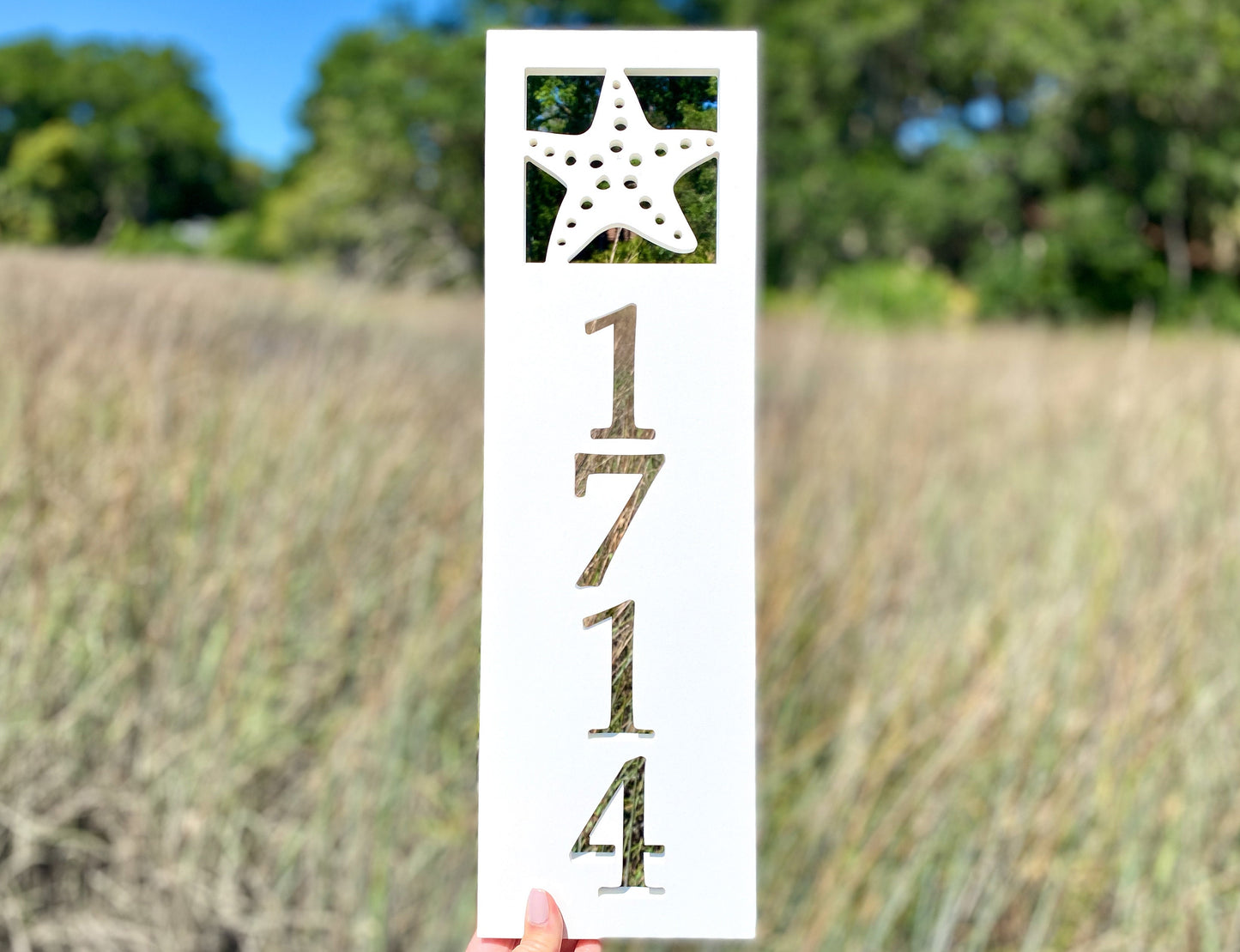 Weatherproof Starfish Address Sign for Beach House, House Numbers for Outdoor Coastal Home Decor