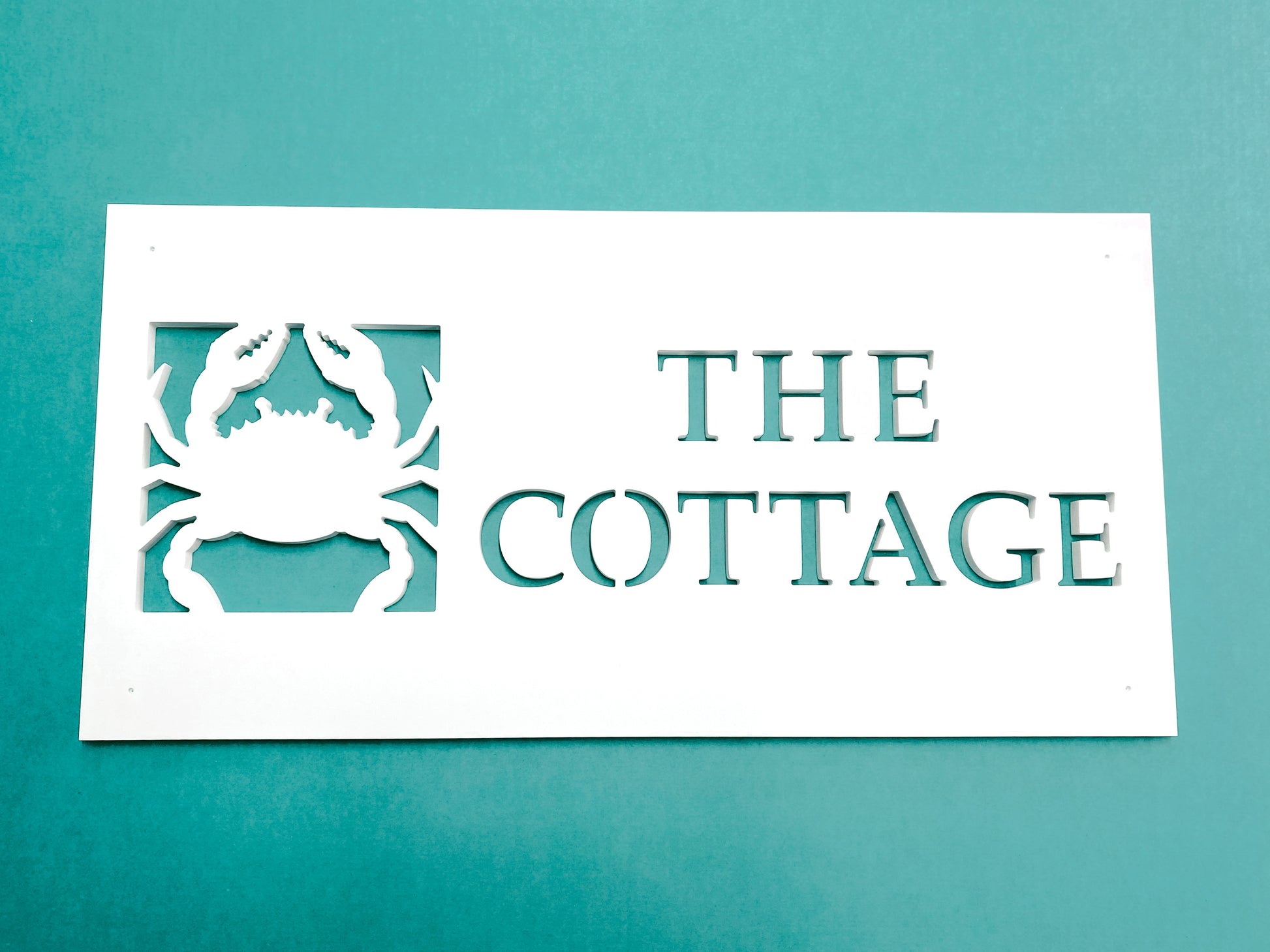 Custom Weatherproof Crab Outdoor House Name Sign, Personalized Home Name Sign for Beach House or Coastal Home, Vacation Rental Property Sign